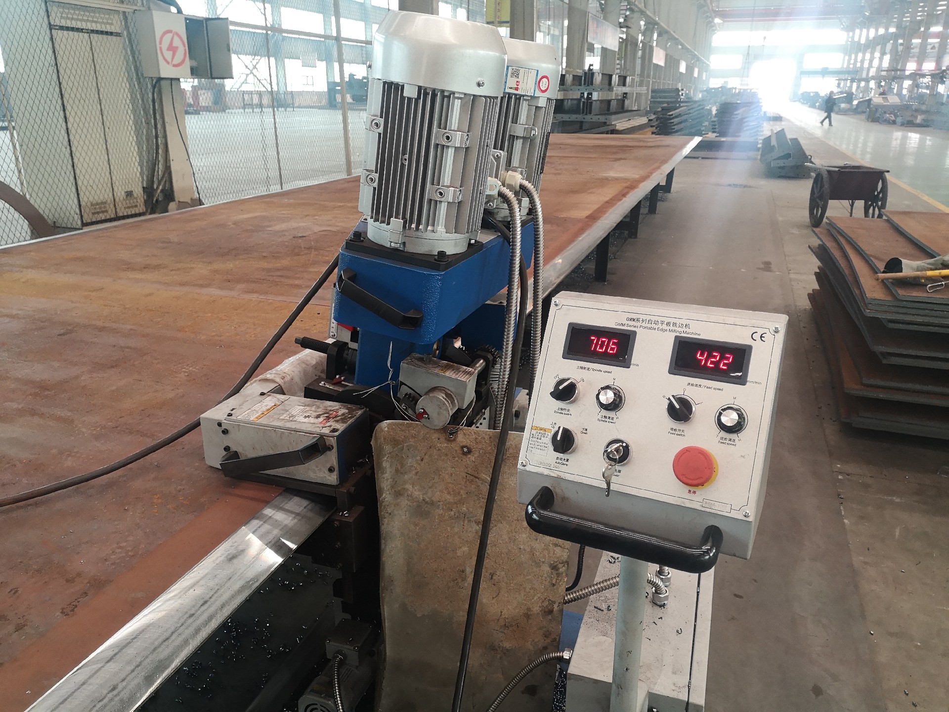 自动行走铣边机可实现此坡口的需求,在0-90°之间可任意调节,能满足插板的坡口要求及坡口质量,自动行走钢板铣边机可有两种加工方式,一种是板材不动设备行走,一种是设备不动板材行走,更方便灵活的解决坡口需求。